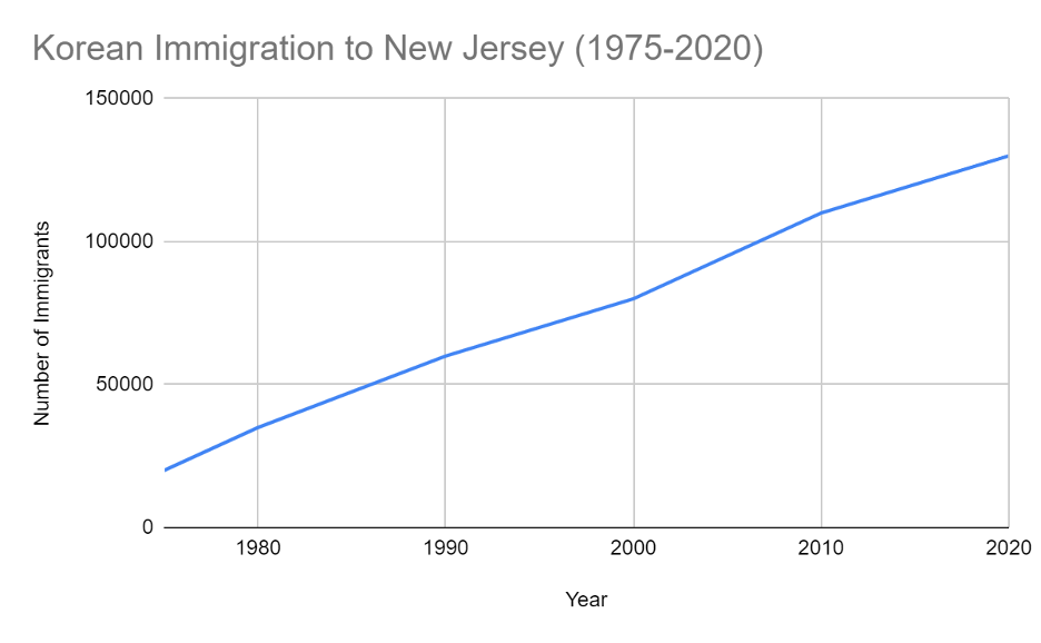 Figure 1. Graph showing the number of Korean Immigrants coming to the U.S. from 1975 to 2020