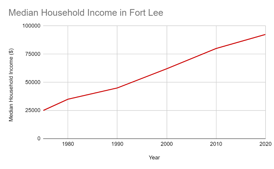Figure 2. Graph showing the median household income in Fort Lee from 1975 to 2020