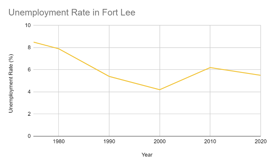Figure 3. Graph showing the unemployment rate in Fort Lee from 1975 to 2020